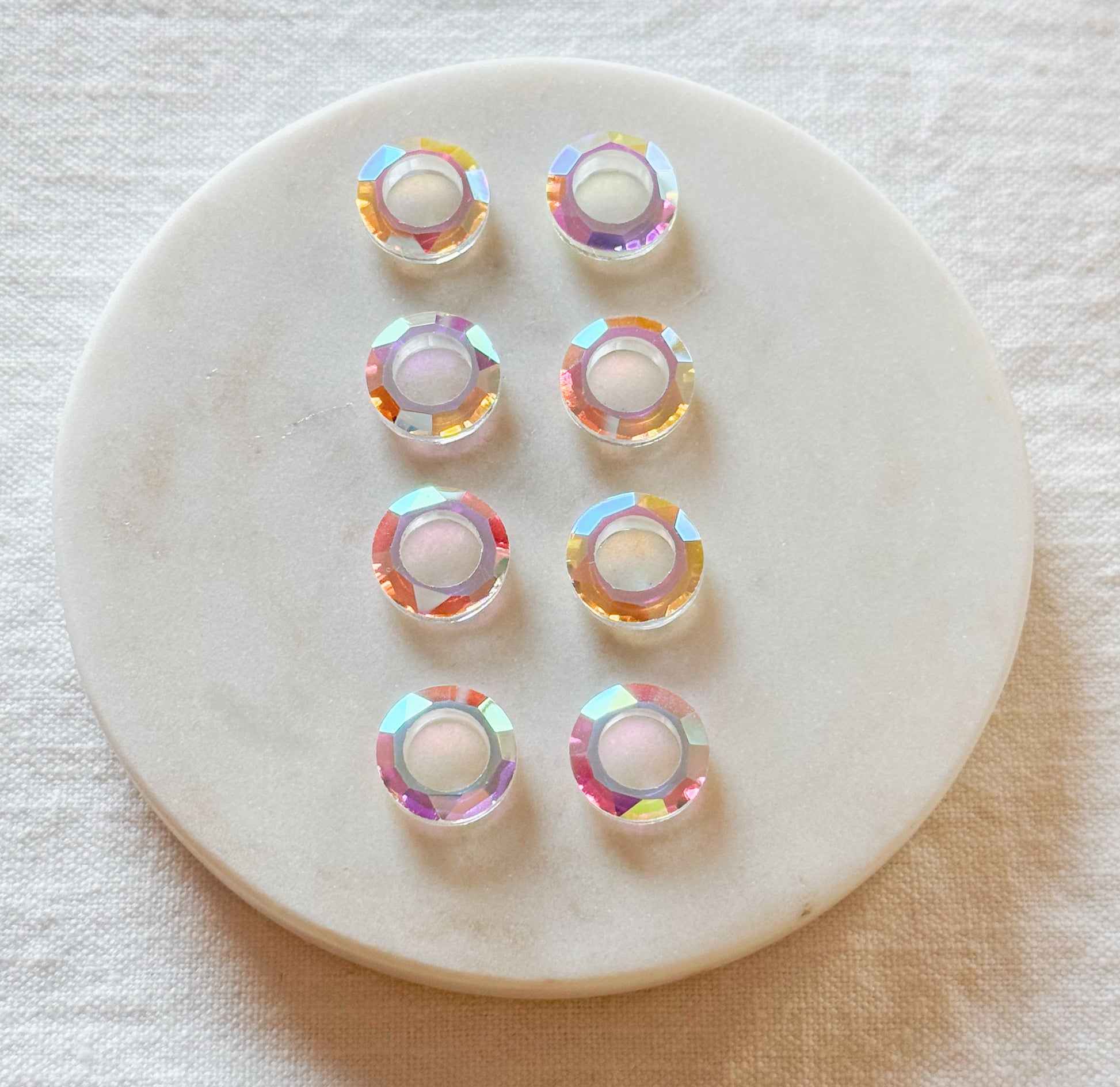 Iridescent glass markører. Skinner og spiller i flerfarget regnbuefarger i lyset.